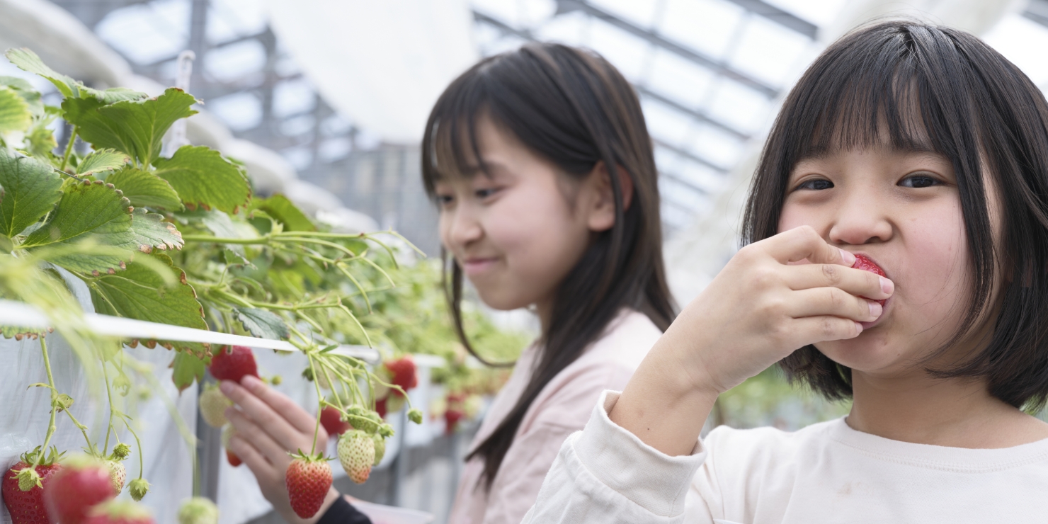 仙台市内からアクセスしやすい立地で、ショッピングやお出かけの前に気軽に立ち寄れるいちご摘み体験スポットです。
