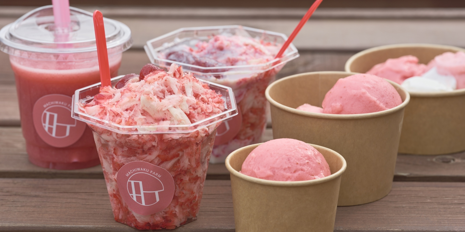 キッチンカーでは、そんな贅沢ないちごをたっぷり使ったスムージーやジェラートをご用意しております。