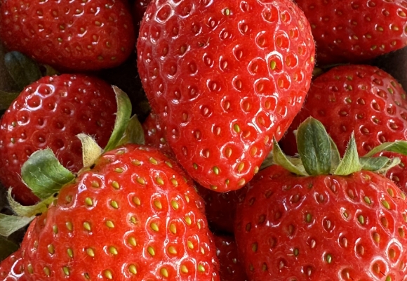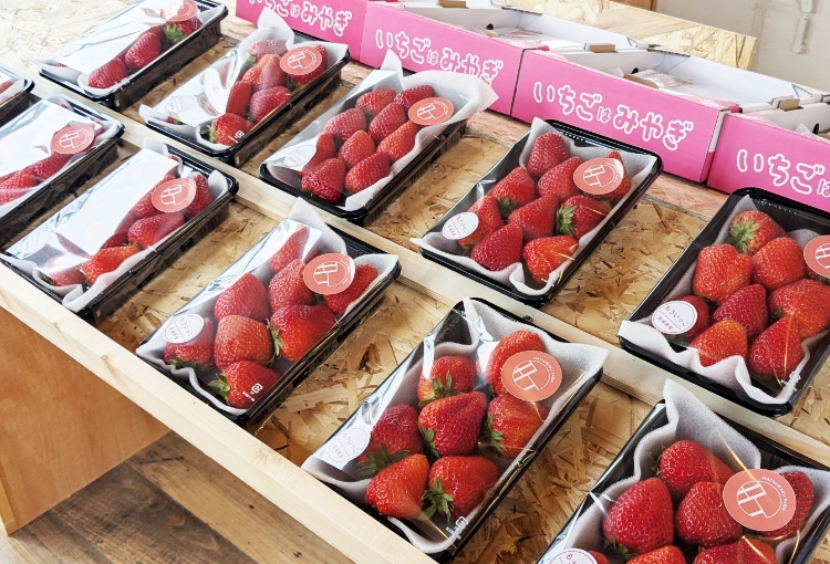 直売所には、収穫したばかりの完熟いちごが並びます。獲れたてだけの濃厚な味わいをお楽しみいただけます。